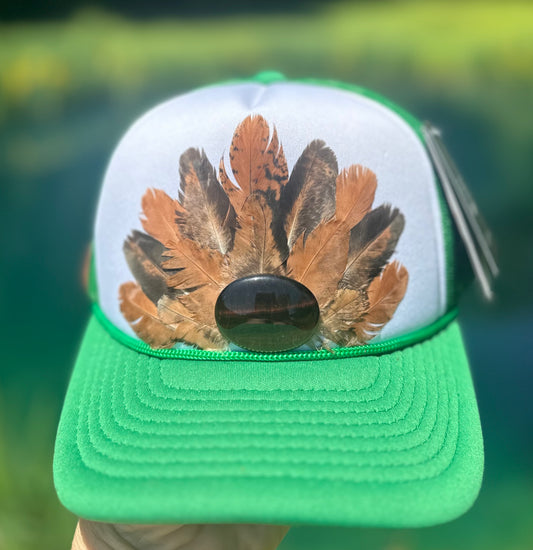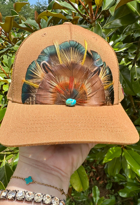 Caramel & Brown Feather Trucker Hat - Cruelty Free