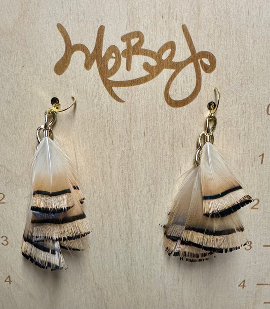 Golden Pheasant Nape Feather Clusters on Gold Leverbacks - Cruelty Free