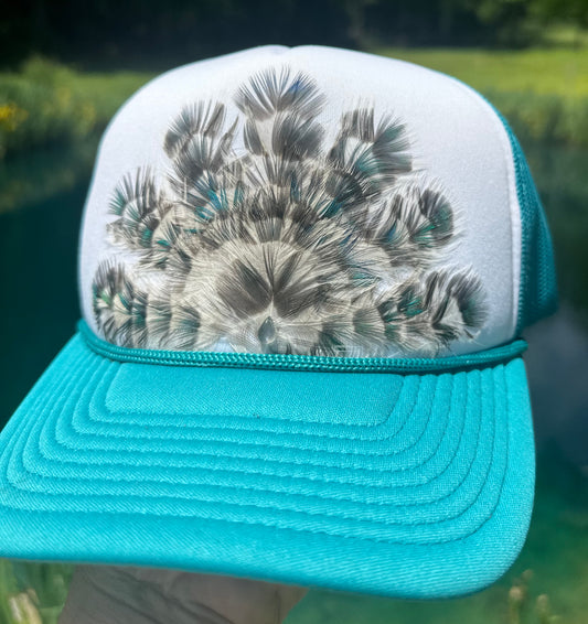 Iridescent Peacock Feather Trucker Hat - Cruelty Free